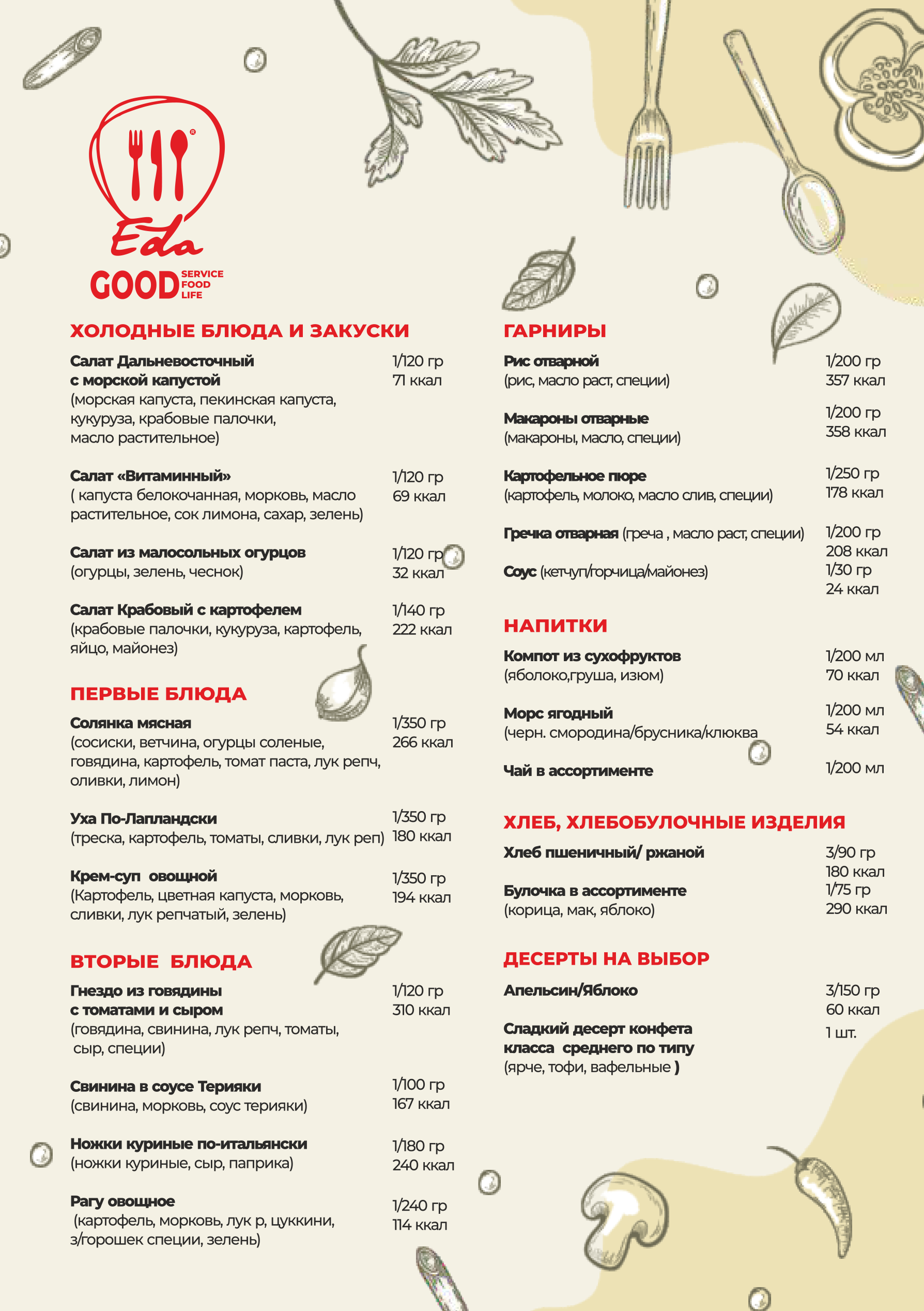 Компания предоставляет услуги по организации корпоративного питания, как выездного (доставка комплексных обедов в индивидуальной упаковке), так и стационарного полного цикла.